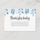 Schicken Sie diese kleinen Bücher für Babykarten in Ihre Einladungen für die Babydusche, wenn Sie Bücher anstelle von Karten anfordern. Mit einem passenden Design in blauen Aquarellfloralen und einem süßen Gedicht, das die Buchanforderung erklärt. Personalisieren Sie mit der Mutter, um den Namen und das Duschdatum auf der Rückseite der Karte, wenn Sie möchten.