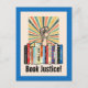 Protest Bücher mit diesem Bild zu verbieten, das ein Regal verbotener Bücher enthält, eine erhabene Faust, einen Ausbruch von Farbrochen und die Worte "Buche Gerechtigkeit" in einem Retro-Schriftart. Von einem Rand reich blauer. Sieht toll aus!