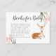 Niedliche Babyduscherkarte zum Hirschthema mit einer Darstellung eines Hirsches mit rosa Tulpenlippen-Blume. Die Karte frage den Gästen, anstelle einer Karte ein neues oder gebrauchtes Kinderbuch einzuführen. Dieses rustikale Design ist perfekt für ein Mädchen Dusche im Frühling!