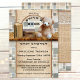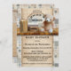 Eine niedliche und originelle Babydusche mit Bücherregal und Teddybär auf einem Burlap- und Fliesendekor.