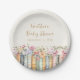 Bücher Baby Duschpapier Teller. Unsere bezaubernden Teller sind mit exquisiten handbemalten Aquarellbildern von Büchern und Wildblumen in sanften Rosa, Blau, Grün und Goldtönen gestaltet. Der Vintage Retro-Schriftart und die trendige, handgeschriebene Schrift in Gold im Elfenbeinrahmen schaffen ein zeitloses und elegantes Design. Diese Teller fügen Ihrem Babyduschdekor eine kohäsive Touch hinzu, sodass jedes Detail perfekt aufeinander abgestimmt ist.
