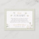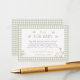 Green Gingham Books for Baby Shower Insert Card Ermuntern Sie, mit dieser grünen Gingham "Books for Baby" Duschkarte beim Aufbau der ersten Bibliothek des Babys zu helfen. Mit einer zauberhaften Aquarelldusche und einer entzückenden Abbildung mit sanften Gingham-Rahmen und einer hübschen Gingham-Grenze verlangt diese Karte, dass die Gäste ein Buch anstelle einer traditionellen Grußkarte mitbringen. Personalisiert mit dem Namen und dem Duschdatum der Mutter, ist es eine nachdenkliche Ergänzung zu den Einladungen und ein schöner Sake für die Eltern. Copyright Anastasia Surridge, alle Rechte vorbehalten.