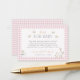 Pink Gingham Books for Baby Shower Insert Card Ermuntern Sie, mit dieser rosa Gingham "Books for Baby" Duschkarte die erste Bibliothek des Babys zu bauen. Mit einer zauberhaften Aquarelldusche und einer entzückenden Abbildung mit sanften Gingham-Rahmen und einer hübschen Gingham-Grenze verlangt diese Karte, dass die Gäste ein Buch anstelle einer traditionellen Grußkarte mitbringen. Personalisiert mit dem Namen und dem Duschdatum der Mutter, ist es eine nachdenkliche Ergänzung zu den Einladungen und ein schöner Sake für die Eltern. Copyright Anastasia Surridge, alle Rechte vorbehalten.