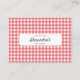 Eine Babybuchkarte für ein Babyduschbad-Party mit dem Thema "Niedliche kleine Tomate". Es zeigt eine Aquarellbilder einer niedlichen kleinen Tomate mit einem roten Gingham-Muster auf der Rückseite.