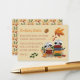 Niedliche ockerfarbene Umzäunungskarten, um Ihren Gästen ein Schild an der Dusche mit zwei kleinen Holzbungalows fragen. Diese haben zwei lustige Raccoons: eine Lektüre und die andere, die hinter einem Stapel Bücher gucken. Verlass den Text so, wie er ist , oder ersetze ihn durch den eigenen . © ArianeC Illustrations-Alle Rechte vorbehalten