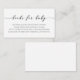Eine Reservierungskarte für Babydusche. Mit schwarzer Kalligrafie und Gedicht: "EINE KLEINE ANFRAGE, HOFFEN WIR NICHT ZU SCHWIERIG BITTE BRINGEN EIN BUCH ANSTATT EINER KARTE, DIE SIE DAS BUCH CHEN, GUT LIEBT ODER NEUE BITTE UNTERZEICHNEN SIE DIE INNEN MIT EINER BOTSCHAFT VON IHNEN!"