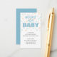 Dieses Babyduschbuch bietet ein abstraktes pastellfarbenes Punktmuster als Hintergrund mit hellblauen Akzenten. Das Design ist perfekt für einen kleinen Jungen. Die Karte enthält ein niedliches Gedicht, in dem die Gäste aufgefordert werden, anstelle einer Karte ein Buch mitzubringen.