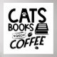 Bücher Katzen Kaffee Funny Reading Buchwürmer Nied Poster