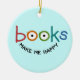 Books Make Me Happy Ornament. Personalize the back to add a special message, quote, name and year... No Extra Charge!