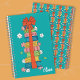 Aquamarines Spiralheft mit einem Haufen Bücher, die mit einem großen roten Bogen verbunden sind. Personalisieren Sie es mit einem Namen. Das Papier ist Set für die Handschriftenpraxis , aber Sie können jeden Typ unter den 10 Auswahlmöglichkeiten wählen, die Ihnen zur Verfügung stehen. © ArianeC Illustrations-Alle Rechte vorbehalten