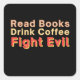 Bücher trinken Kaffee kämpfen Böses Quadratischer Aufkleber