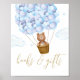 Ein blauer Babyduschbücher und ein Geschenkschild mit einem niedlichen Bären in einem Heißluftballon. Entwickelt von Thisisnotme©
