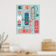 In diesem Poster mit Lesezeichen in Korallentönen, aquamarinem Blau, Bräune und Salbei-Grün vor einem hellgrünen Hintergrund können Sie die Touch der Bibliothek oder das Bücherregal genießen.