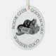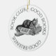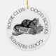Klassische grafische Schwarzweiss-Eigenschaften, die eine Katze sich oben auf einem Stapel Büchern kräuselte. Text liest Buchgemeinschaft - gute Bücher - gute Freunde. Verzierung ist für die Feiertage perfekt. Hängen Sie ein auf einem Baum, im Büro, in der Bibliothek, im Leseraum und in Ihrer Lieblingslesestelle. Verwenden Sie als Geschenk, Preis oder Preis.