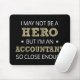Ich bin vielleicht kein Held, aber ich bin ein Buchhalter, der so nah genug humorvolle Wortkunst in Sans-Serif und doodle Cross-Luch-Schriftart in weiß und golden gelb schreibt.