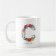 Whimsikale, festliche und elegante Blumenbriefe Tasse mit Blume in Rot, Grün, Gold und Grau. Andere Farben und Buchstaben sind verfügbar.