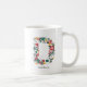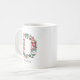 Whimsikale, festliche und elegante Blumenbriefe Tasse mit Blume in Rot, Grün, Gold und Grau. Andere Farben und Buchstaben sind verfügbar.