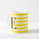 Letter E Tasse mit Set gegen gelbe Streifen.