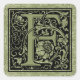 Charmanter dekorativer Buchstabe F erste monogramm Kalligraphie Stil Typografie ersten Buchstaben in schwarz über Vintagen Salbei grün - Avocado grüne Buch Futter mit von weißen Ginkgo biloba Blätter.