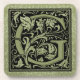Charmanter dekorativer Brief G erste monogramm Kalligraphie Stil Typografie ersten Buchstaben in schwarz über Vintagen Salbei grün - Avocado grüne Buch Futter mit von weißen Ginkgo biloba Blätter.