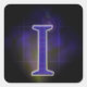 Stickers traf de letter I. (bijvoorbeeld je initiaal) Leuk als je naam met de I Begint von die van een ander. Achter de letter ist een raster en mysterieuze wolken met een licht die erop schijnt. De Brief I ist gevuld treffen sich karierte patroon en een grijze rand erom heen. kleuren blauw, paars, geel en zwart.