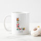 Whimsikale, festliche und elegante Blumenbriefe Tasse mit Blume in Rot, Grün, Gold und Grau. Andere Farben und Buchstaben sind verfügbar.