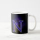 Mok traf de letter N. (bijvoorbeeld je initiaal) Leuk als je naam met de N Begint von die van een ander. Achter de letter ist een raster en mysterieuze wolken met een licht die erop schijnt. De letter N ist gevuld treffen sich in karierten patroon en een grijze rand erom heen. kleuren blauw, paars, geel en zwart.