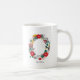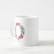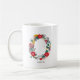 Whimsikale, festliche und elegante Blumenbriefe Tasse mit Blume in Rot, Grün, Gold und Grau. Personalisieren Sie diese durch Hinzufügen von Namen oder einer kurzen Wortgruppe. Andere Farben und Buchstaben sind verfügbar.