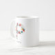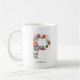 Whimsikale, festliche und elegante Blumenbriefe Tasse mit Blume in Rot, Grün, Gold und Grau. Personalisieren Sie diese durch Hinzufügen von Namen oder einer kurzen Wortgruppe. Andere Farben und Buchstaben sind verfügbar.