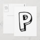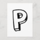 Die elegante Letter P Postcard - eine stilvolle und personalisierte Art und Weise, warme Wünsche zu senden oder eine Touch der Eleganz in Ihren Raum zu fügen. Diese Postkarte zeichnet sich durch einen wunderschön gestalteten Buchstaben P in einem geschmackvollen Schriftart aus, der ein optisch ansprechendes und anpassbares Design schafft. Machen Sie eine Aussage mit der Letter P Postcard - ein elegantes und anpassbares Accessoire, das Ihren Grüßen oder Ihrer Dekoration eine Touch von Eleganz verleiht. Bestellen Sie jetzt Ihre Nachrichten und Räume mit dieser wunderschön gestalteten Postkarte!