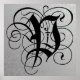 Buchstabe P, schwarzes, gotisches Monogramm Poster