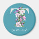 Elegante Imitate weißer Metallbuchstabe T Monogramm mit schönen und raffinierten rosa Weiß und magenta Magnolien, ergänzt durch delikate lila Füllstoffe Blume und grüne botanische. Es ist einfach exquisit! Der personalisierte Name am unteren Rand vereint das Design und macht es einzigartig und auch ein perfektes personalisiertes Geschenk für eine fabelhafte für sie. Türkisfarbener Hintergrund ist anpassbar.