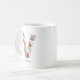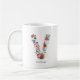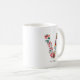 Whimsikale, festliche und elegante Blumenbriefe Tasse mit Blume in Rot, Grün, Gold und Grau. Personalisieren Sie diese durch Hinzufügen von Namen oder einer kurzen Wortgruppe. Andere Farben und Buchstaben sind verfügbar.