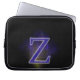 Laptop-Hoes trafen de letter Z. (bijvoorbeeld je initiaal) Leuk als je naam met de Z Begint von die van een ander. Achter de letter ist een raster en mysterieuze wolken met een licht die erop schijnt. De letter Z ist gevuld treffen sich in karierten patroon en een grijze rand erom heen. kleuren blauw, paars, geel en zwart.