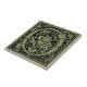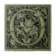 Charmanter dekorativer Brief O initiale Monogramm. Typografie im kalligraphischen Stil. William Morris erster Brief in Schwarz über Vintages Avocado grünes Buch Auskleidung mit weißen Ginkgo Biloba-Blätter.