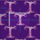 Hübsche whimsical anfängliche T zeichnete in grafische Buchstabenkunst in lila und rosa Farbtönen auf dunklem lila Hintergrund. Die Hintergrundfarbe kann bei Bedarf auf Ihre eigene Farbwahl geändert werden. Personalisiert mit dem eigenen Initial liest dieses Gewebe T, ideal für kundenspezifische Nähprojekte. Andere Briefe sind verfügbar. © Original zeichn und Design von Sarah Trett. www.sarahtrett.com für www.mylittleeden.com
