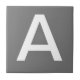 Keramik Buchstaben Fliesen. Kleine oder obere Buchstabenkacheln. Sie passen sich die Buchstaben an, die Sie für Ihre Keramik oder Mosaikschild benötigen. Buchstabenkachel für wetterfeste Schilder, Hausnummer. Weiß auf grauem Hintergrund.