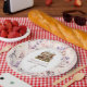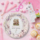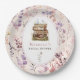 Diese Teller sind für ein Brautparty mit dem Thema "Neues Kapitel" gedacht. Die Platte zeigt Illustrationen eines Aquarellbildes mit Blumendekorationen und der Hintergrund ist die Feder-Wildblumen in sanften Farben. Klassischer deutscher Schriftart für ein Gefühl alter Kinderbilderbücher. Ideal für eine buchenliebende Braut.