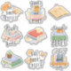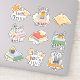 9-Sticker-Packung mit Büchern mit Katzen, Hunden, Kaffee und Zitaten.