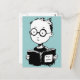 Schwarz-Weiß-Abbildung eines jungen Jungen in Brillen, der ein Buch offen hält und nach oben schaut.