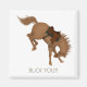 Ein freudliches Reitdesign mit einem rebellischen braunen Pferd und den Worten "Buck You!"
