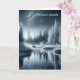 Eine ruhige Winternacht wird mit einem Reh dargestellt, der von einem reflektierenden Fluss stehend ist, umgeben von schneebedeckten Bäumen für das allgemeine Beileid. Text ist bearbeitbar.