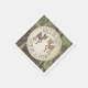 Das Geschlecht enthüllt Party-Servietten mit einer Abbildung von zwei Hirschen. Doe trägt eine Blume. Im Text steht "Buck or Doe? Bald werden wir es wissen!" Hintergrund ist das Muster der Camouflage.