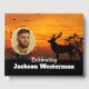 Feiern Sie das Leben Ihres Lieben mit diesem Design mit einem schönen Buck silhouetted gegen einen feurigen orangen Sonnenuntergang.