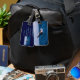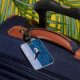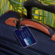 Gepäckanhänger, der einen Buckelwal in einer durchbrechenden Anzeige im Wasser weg von den Surfern Paradies kennzeichnet, Australien. Jedes Jahr wandern Tausenden Buckel nördlich von der Antarktis entlang der australischen Ostküste zu Nährböden weg von QLD ab. Es ist kundengerecht und einfach erfordert Sie, Ihren eigenen Namen einzutragen, Adresse, Telefon und E-Mail.
