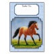 Wildes Buchenpferd, das über ein grasbedecktes schlichte galoppiert. Akzentriert mit einem hübschen Himmelblau gemusterten Hintergrund.