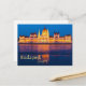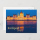 Entlang der wunderschönen, blauen Donau weht im frühen Abend in Budapest das ungarische Parlament-Gebäude. Diese Postkarte ist vollständig anpassbar und auf andere Produkte übertragbar.