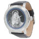 Uhr, Klassische Damenuhr mit schwarzen Lederarmband