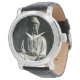 Uhr, Klassische Damenuhr mit schwarzen Lederarmband