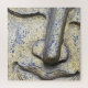 Buddha Statue Face Detail. Ein Buddha-Kopf wird geschnitzt, um die Weisheit des Buddha zu repräsentieren, zusammen mit dem ruhigen Lächeln des Gesichts, das die friedliche und ruhige Natur des Buddha symbolisiert.